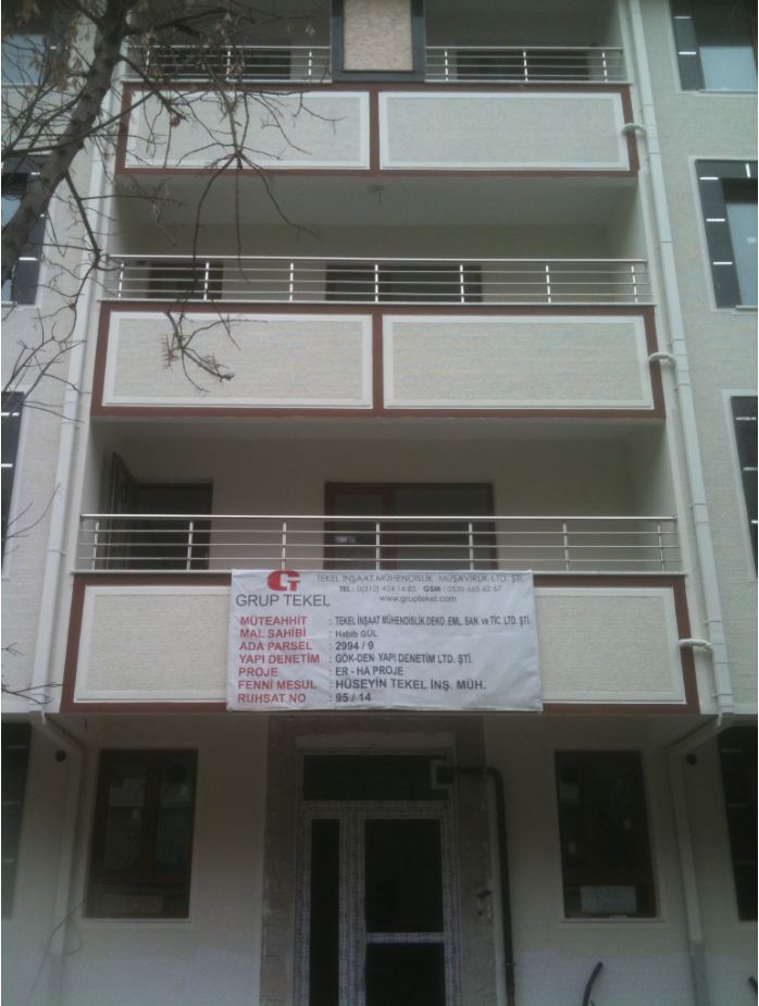 -Bingöl Saray Mahallesi Bağkur 1, HbLOK, -Bingöl Mevlana Caddesi Dumlupınar Sokaktaki Ertuğrul Apartmanı, -Bingöl İnönü Mahallesi Hacılar Sokak Bor Apartmanı, -Bingöl İnönü Mahallesi Mevlana Caddesi Karagöl Apartmanı, -Bingöl Kaleönü Mahallesi Elmalı Konutları Kına Apartmanı, -TEDÜ Kolej Yerleşkesi Genişleme Projesi Güçlendirme İmalatı işi, -Ankara Çankaya Tunus Caddesi 72 nolu Menekşe Apartmanı.